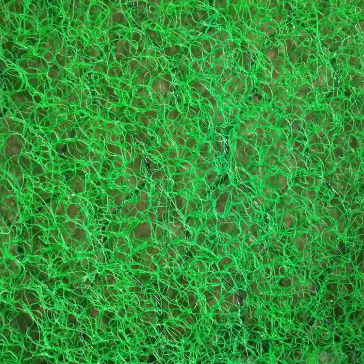 加筋麦克垫是一种由细丝缠绕而成,在接触点上经热粘结的三维聚丙烯土工网垫,在植被恢复前可保护表土受雨水的冲击以及降低径流剪切力对坡土造成的侵蚀,植被根系形成后可作为根系的永久加筋体,提高自然植被根系抵抗剪应力的能力。麦克垫顶部采用锚固沟固定,坡面采用U型钉固定,间距1m呈梅花形布置。土壤增活有机基质能增加有机质和土壤的生物活性,随着植被的建立以及以后的营养物质的循环从而改良土壤结构。帮组建立土壤的O层和A层,营造植被重新生长的条件,促进植被的快速恢复。在土壤化学成分改善的同时,提供理想的植被生长环境。高性能生态基材为防侵蚀喷播组合生物材料,与水、生长刺激剂在基材喷播机中搅拌均匀后喷施在表面,形成一层防侵蚀纤维植生毯,具有覆盖、保温、保水、加速植物生长及壮根的功能,从而达到快速成坪的优良绿化效果。